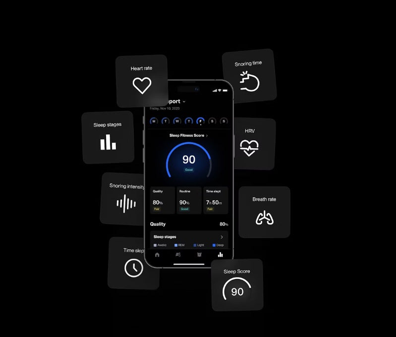 Sleep Tracking: Heart rate, HRV, sleep cycles, snoring detection, respiratory rate
