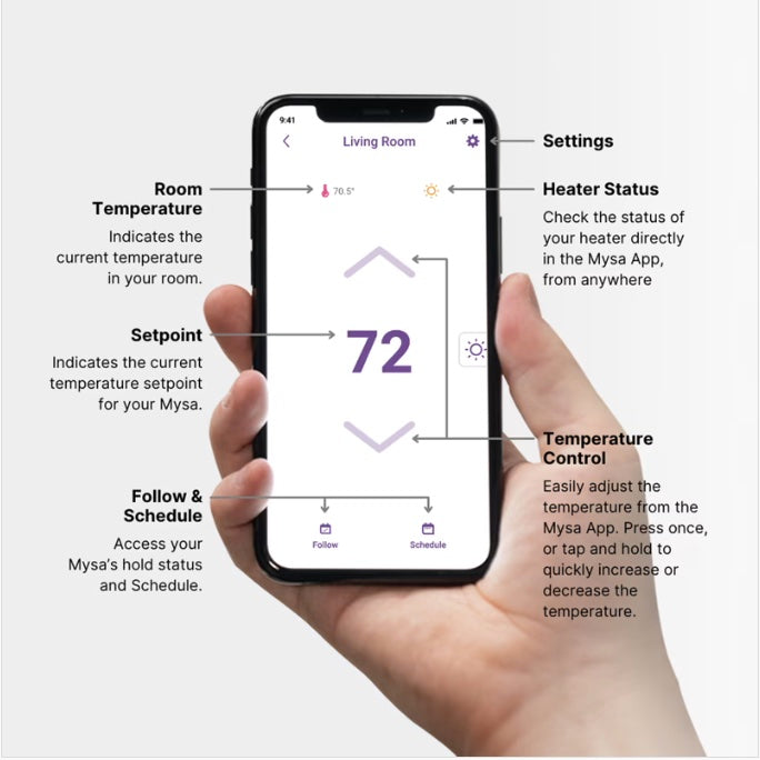 • Supports remote access through the Mysa app when connected to Wi-Fi